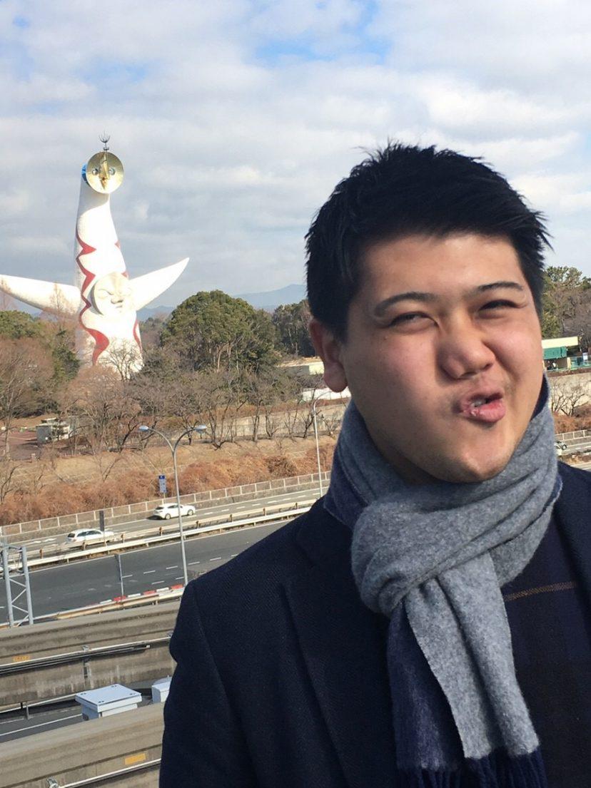 (仲間を売った)画像をお送り頂いた方によると、「太陽の塔のマネをしている藤原です。」との解説がありました。