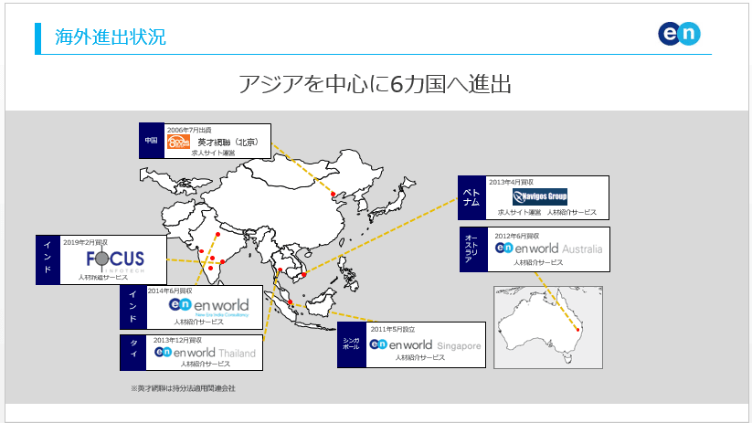 エン・ジャパンは日本国内だけではなく、海外6カ国へ進出しています。