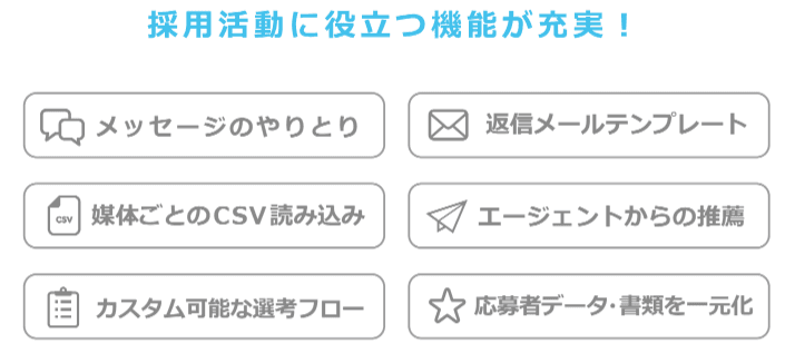 採用をするとなると、人材エージェントや求人メディアなど、いろんな経路から応募が来ると思うんだけど、それを一元管理できるんだ。