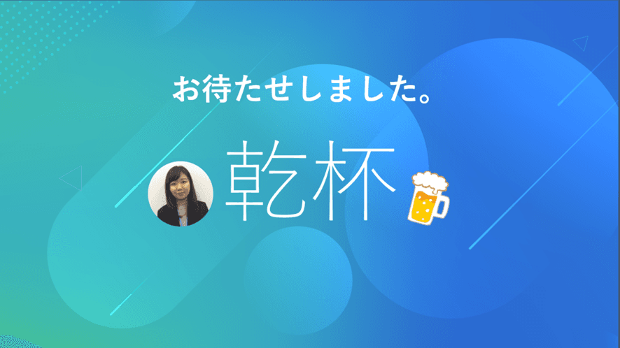 盛り上がったところで、お待ちかねの乾杯のお時間。