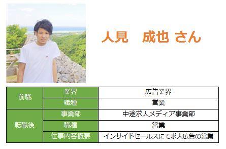 みなさん柔らかい雰囲気の笑顔でとっても癒されます・・・!前職の上司とエン・ジャパン社員が同級生というご縁には驚きです!お客様のことを大好きだと感じられている人見さん。そんな素敵な考えをお持ちならきっと愛される営業になれるのではないでしょうか。これからのご活躍、応援しております!