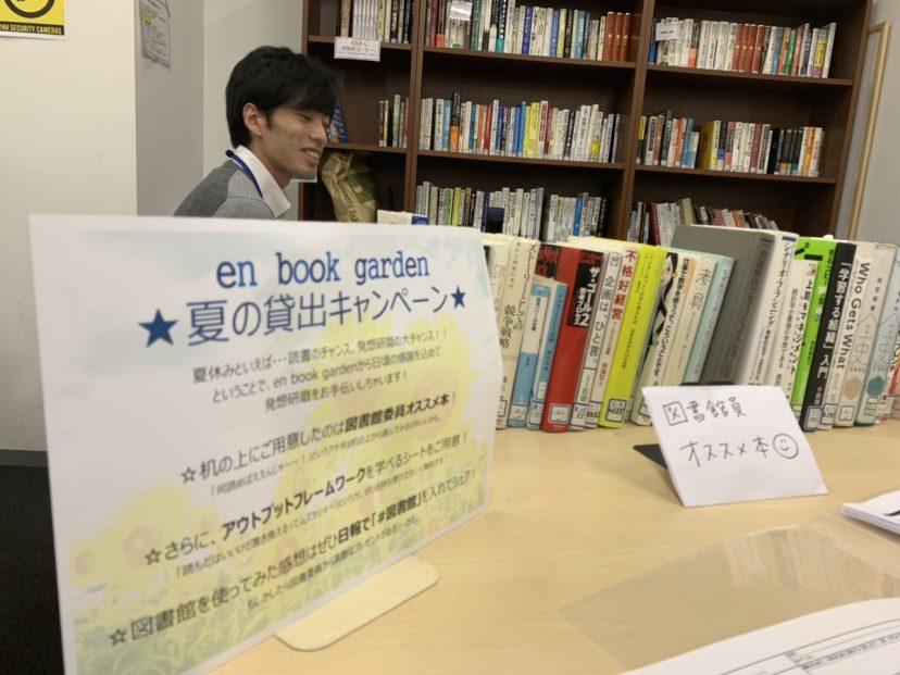 さて、エンの社内にはいくつか社内図書館がありますが、その中でも一番の老舗(!)33階のen book gardenでは先日、夏休みに合わせて「夏の貸出キャンペーン」を行ないました\(^o^)/