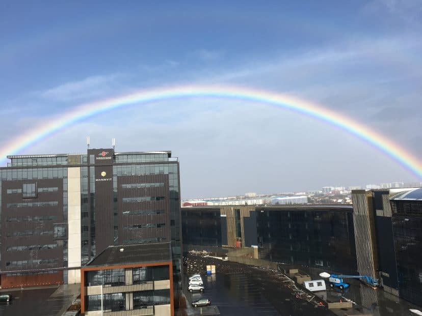 この写真のようにはっきりと虹が架け橋のようになっているのを見たのはこのときが初めてでした…!雨が降った後に晴れると見ることのできる虹は、お目にかかれるとちょっとラッキーな気分にもなりますよね!
