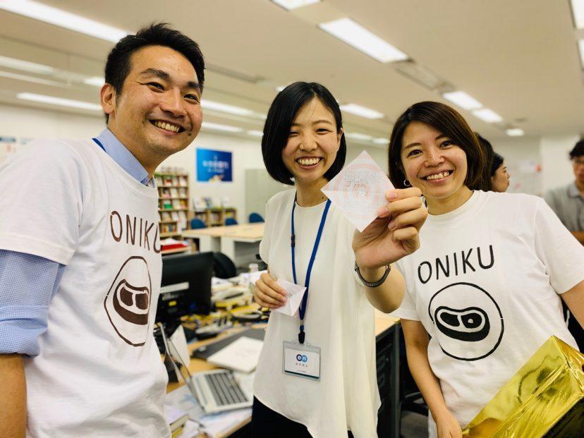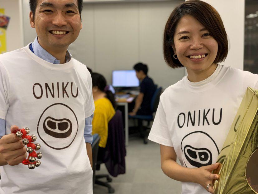 すると、「ONIKU」とロゴが書かれた謎のTシャツを着ている二人を発見。