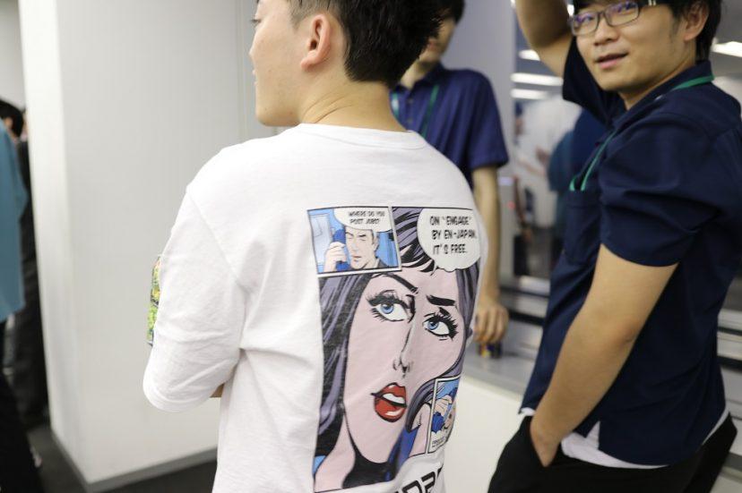 Tシャツ紹介をしていると、乾杯のために駆けつけたのは・・・