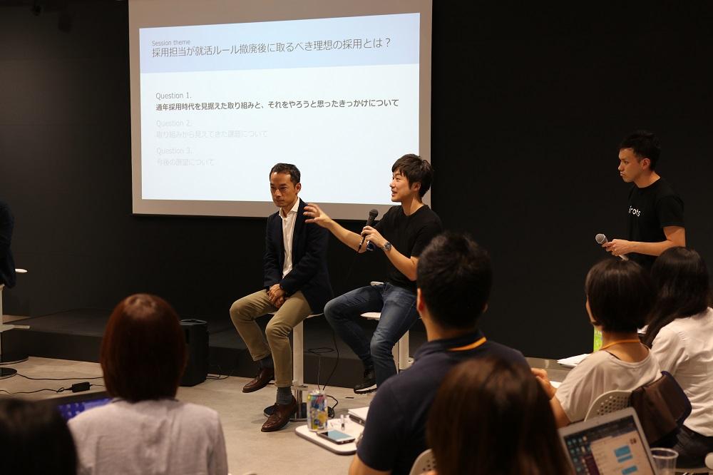新卒採用で通年採用を広がるに当たり、まず何から始めたらいいかわからない採用担当者様も多いのではないか?ということから、「新卒通年採用の取り組み」について、少し進んだ取り組みをしている方々を招いて人事皆さんで語らおう。