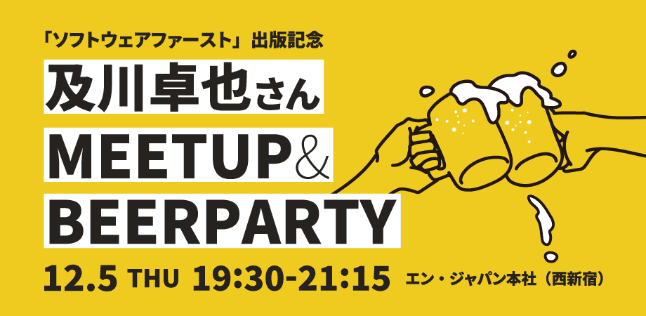 【限定20名】「ソフトウェアファースト」出版記念 及川卓也さんミートアップ&ビアパーティー inエン・ジャパン
