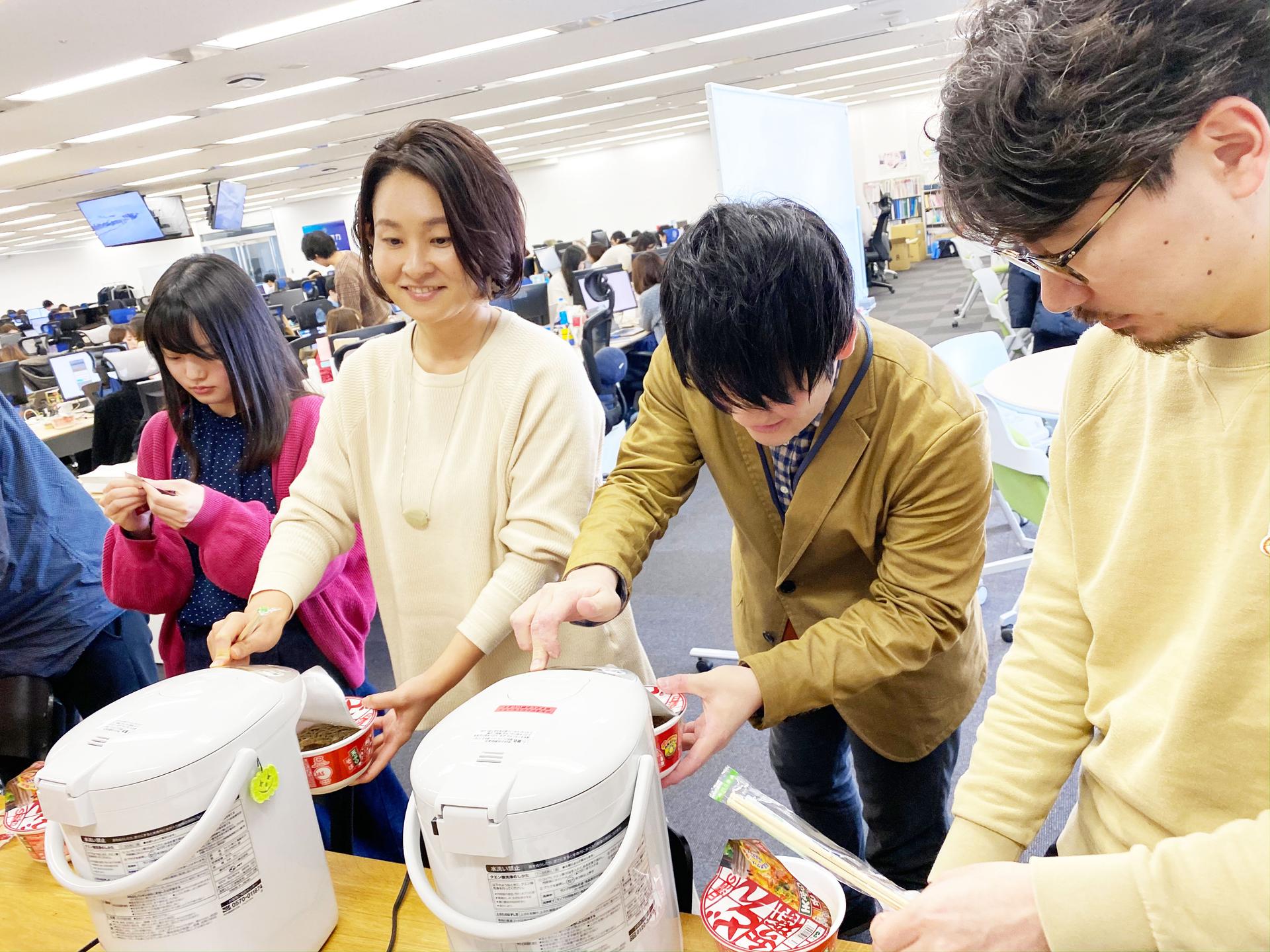 ということで、東京オフィスのとあるフロアで「2019年御礼!どん兵衛ランチ」開催しちゃいました。