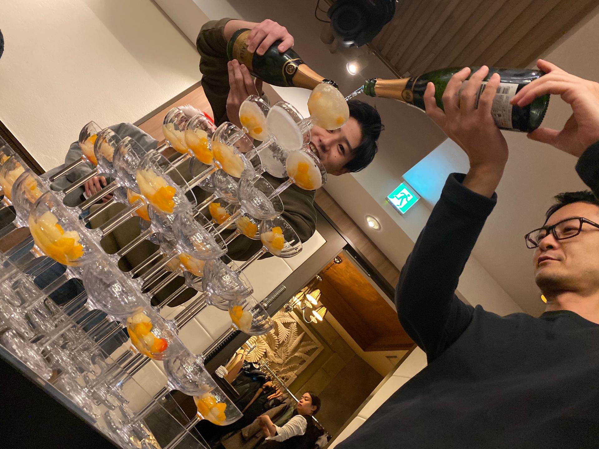 11月財プラでMVPを獲得した岩本さんと我らが事業部長天野さんに注いでもらいました~