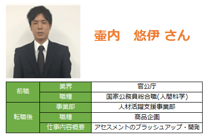 これまで大学や大学院で心理学を学んできていたので、それを商品企画に活かして「入社後活躍®」を実現したいと考えて転職を決めました。