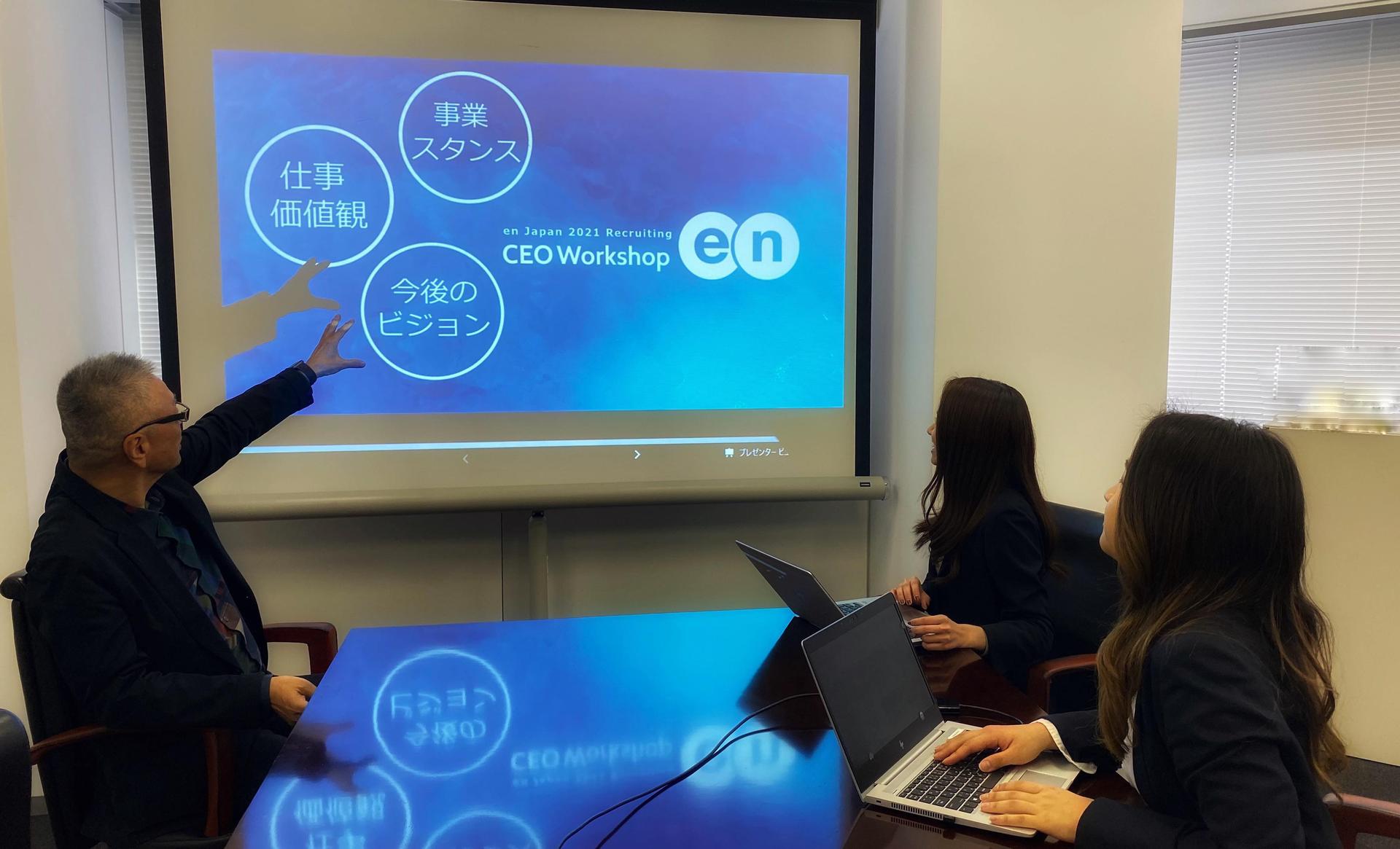 今までのエン・ジャパンでは、会長の越智さん、社長の鈴木さんに必ず登壇いただき、代表自らエンのありのままを伝えていました。