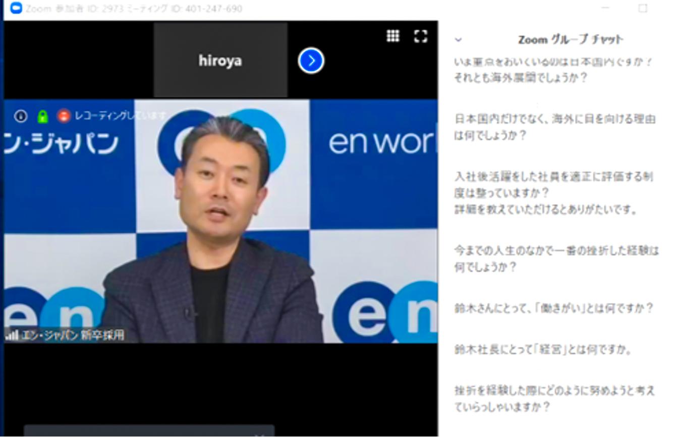 そして、ここからは、学生のみなさんからの質問パート。エン・ジャパンのオンラインセミナーでは、対面のセミナー同様「双方向性」を大事に。