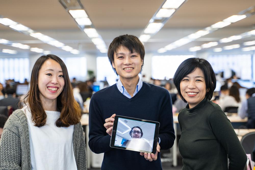 三上さん(左)、 太田さん(中央)、波多野さん(画面での中継)、義名さん(右)