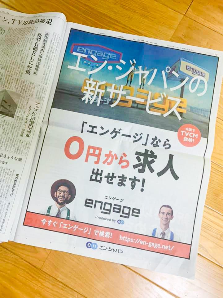 本日(4/1)の日経新聞で、エン・ジャパンの新サービス『エンゲージ』が1面広告を掲載しました!