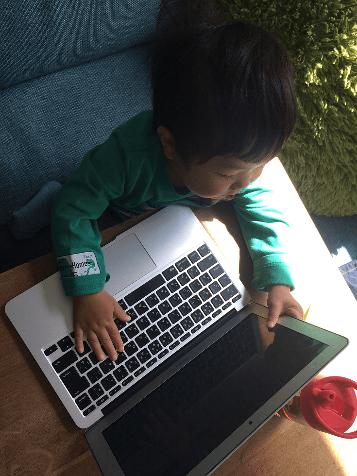 ・子供は親が触っているものに興味を持ちがち。使っていない自宅のPCを渡すことで、会社のPCに触れることが減りました。横に座ってお仕事している風を楽しんでいます。