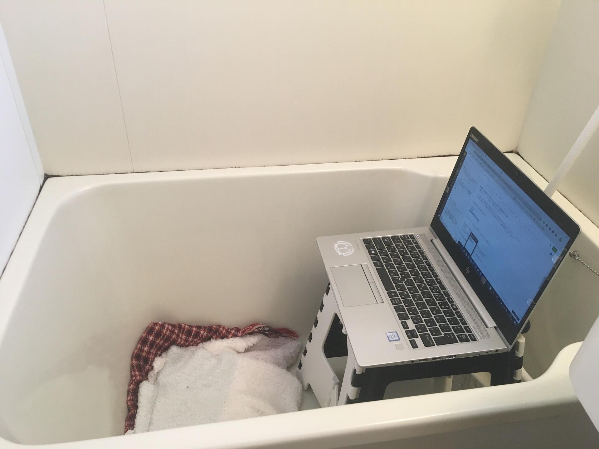 家の中でも気分を変えたくて、たまに浴槽で仕事をしている今日この頃です。
