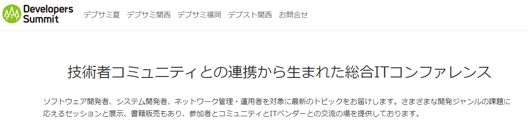 ところで皆さんは『Developers Summit』(通称デブサミ)というイベントをご存知でしょうか?