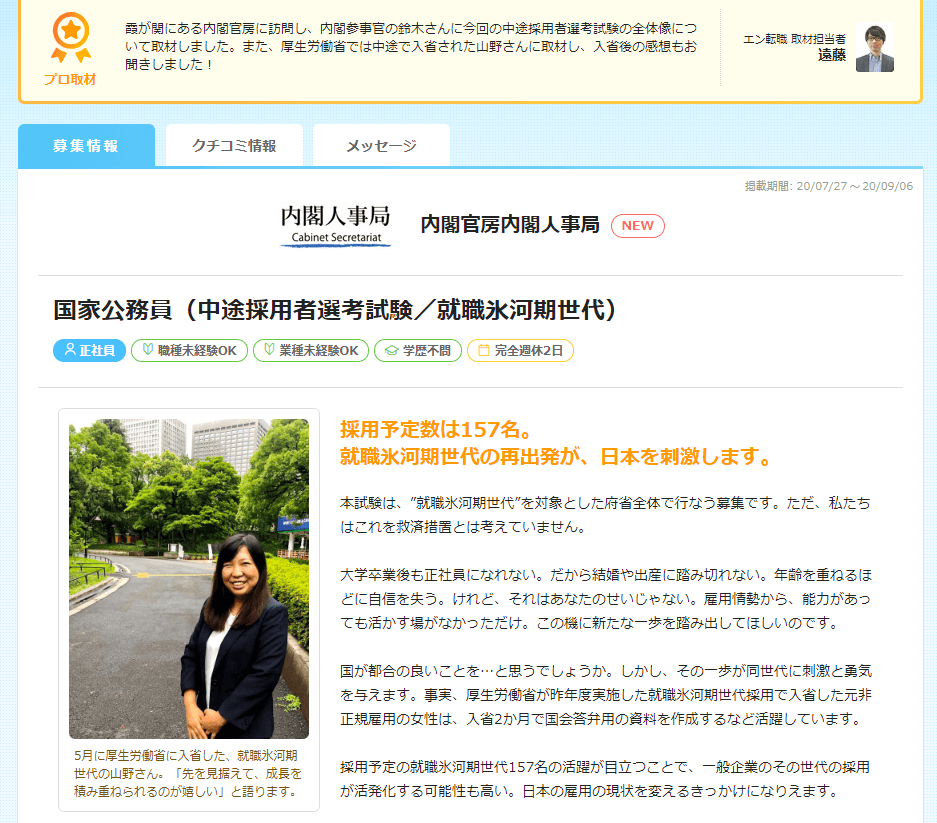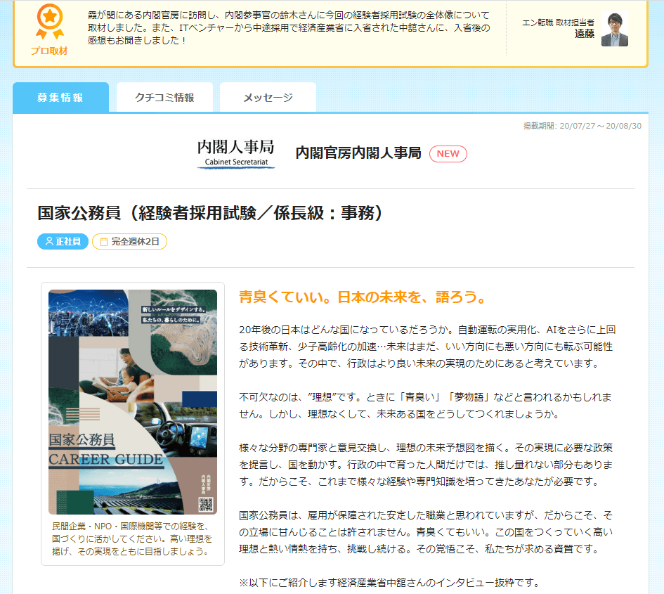本日7/27(月)より、エン・ジャパン×内閣官房 採用支援プロジェクト開始しました!