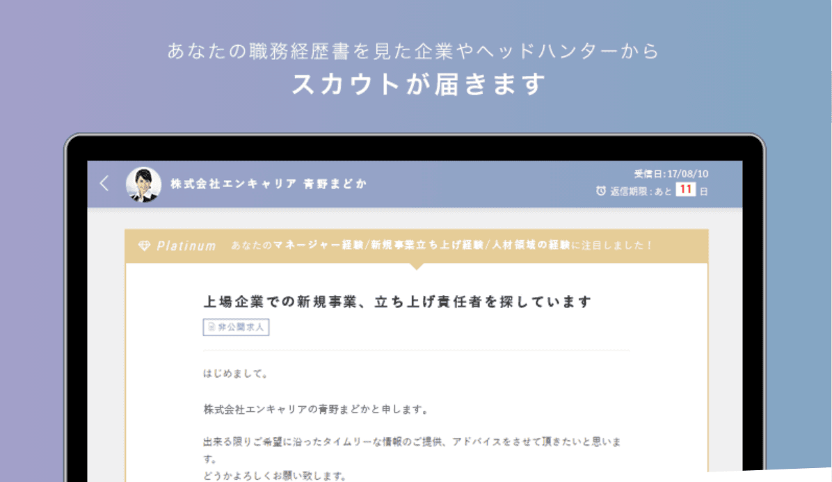 【特徴①】魅力的な求人のスカウトが届く