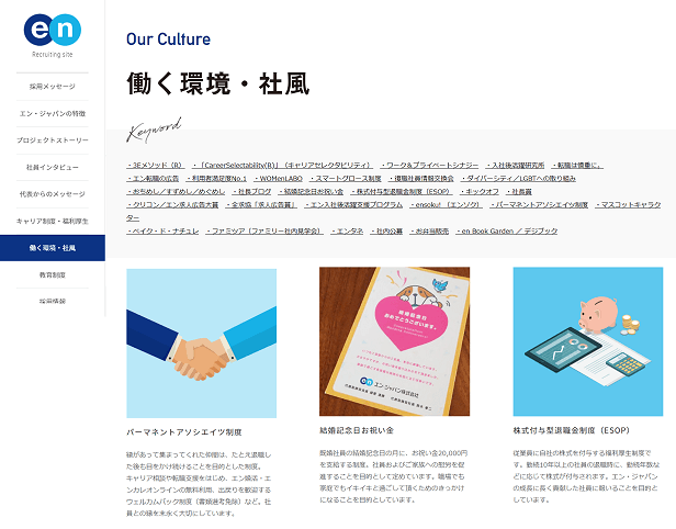 ▼エン・ジャパン採用サイト(働く環境・社風 Our Culture)