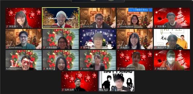 24日のクリスマスイブに「クリスマス会」を実施!全員がZoom背景をクリスマス仕様にして、オンラインあみだくじによるプレゼント交換をしたようです。