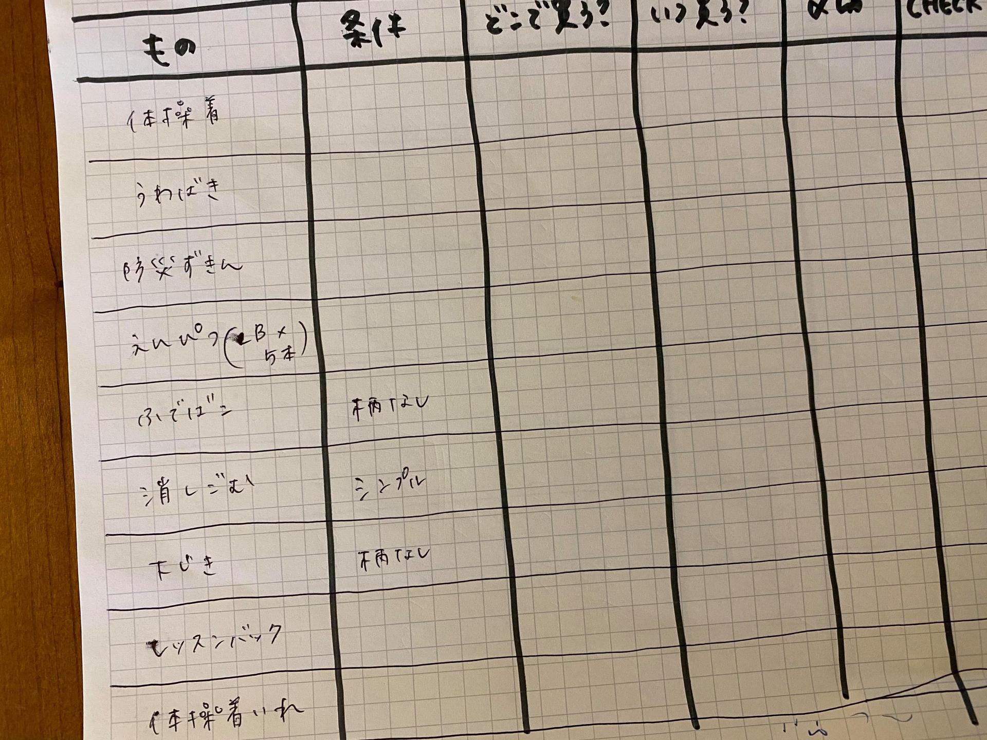 ・体操着や上履き購入の期限がきまっていたり、筆箱や鉛筆の濃さなども学校ごとにルールが。必要タスクを可視化することをおすすめします。