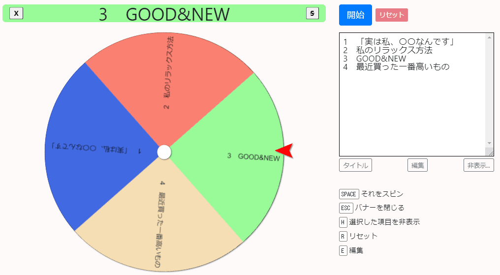・Webルーレット(https://jp.piliapp.com/random/wheel/)