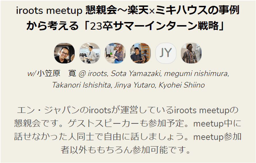 新卒ダイレクトリクルーティングサービス「iroots」が主催する人事向けミートアップ。