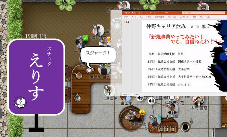 スナックえりすに参加した気分をぜひ味わってください◎ そして皆さんの部署でもぜひ開催を^^