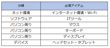※念の為、テレワークの必須アイテムとおすすめアイテムの一覧(再掲)です。