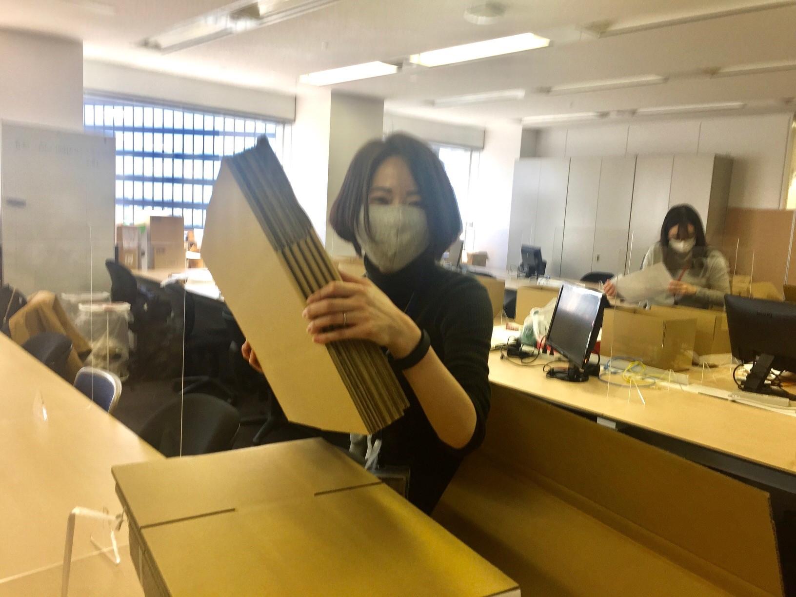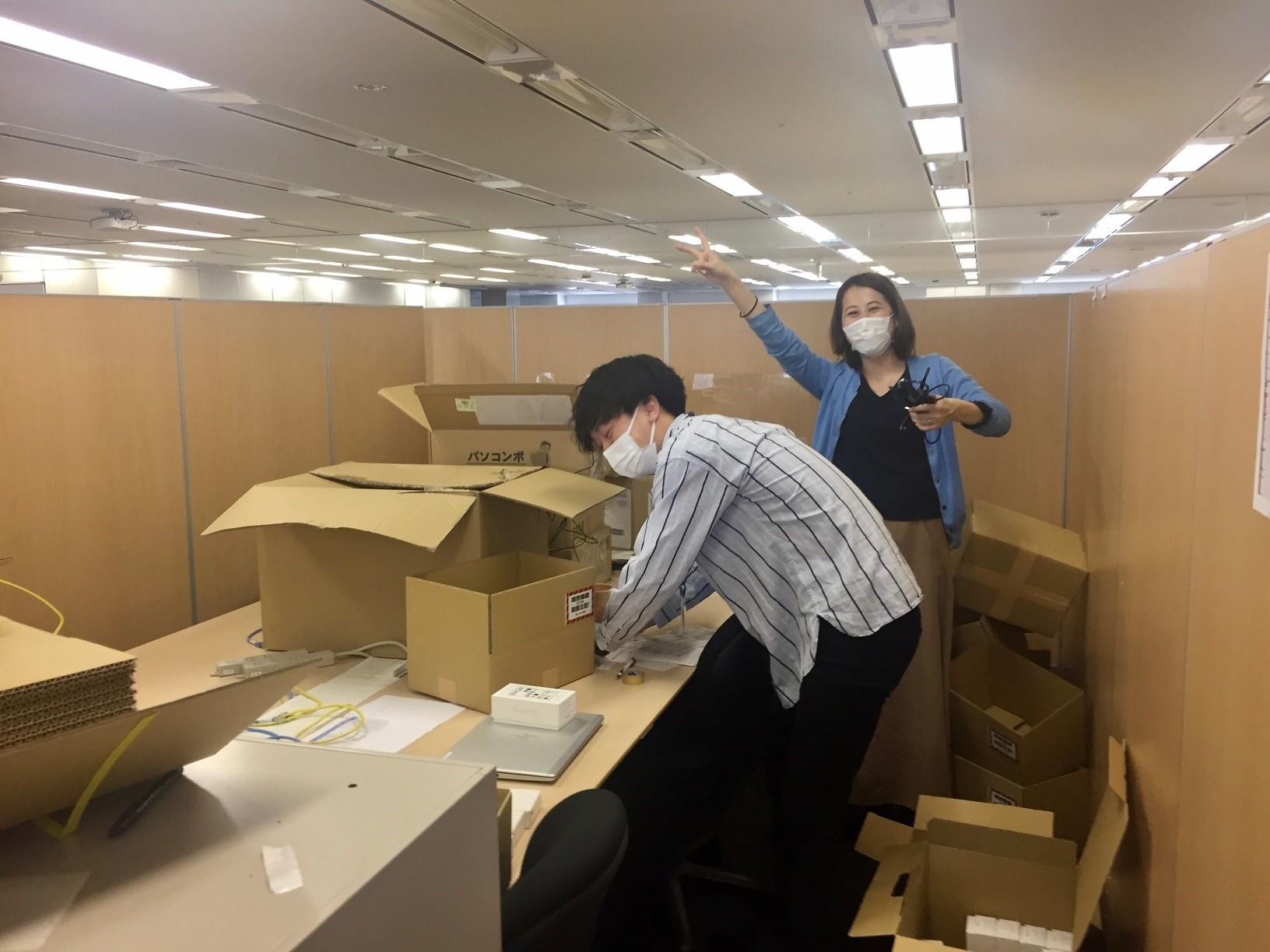 まるで引っ越し…?!な風景ですが、実はこちら、新入社員に向けてPCを発送する作業中。