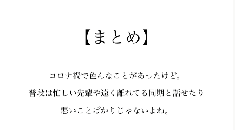 そんな中、リアルではなかなか会えない先輩たちへ、新入社員のみんなから素敵な動画が届きました\(^o^)/
