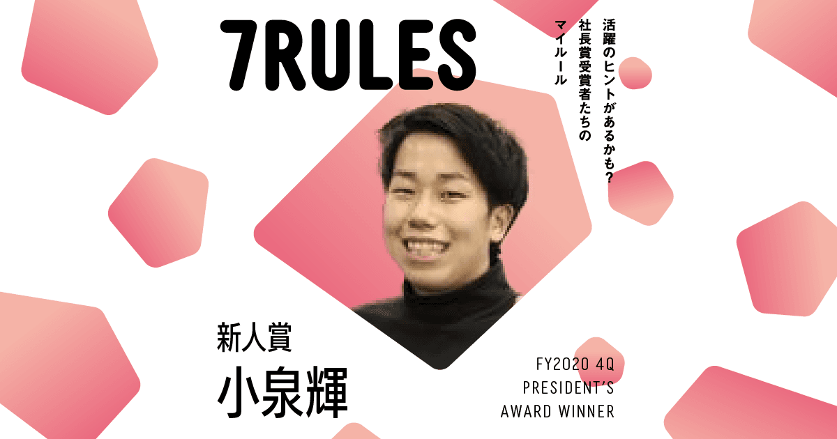 今回は、社長賞新人賞を受賞したengage事業部・小泉さんの7 RULESを紹介します。