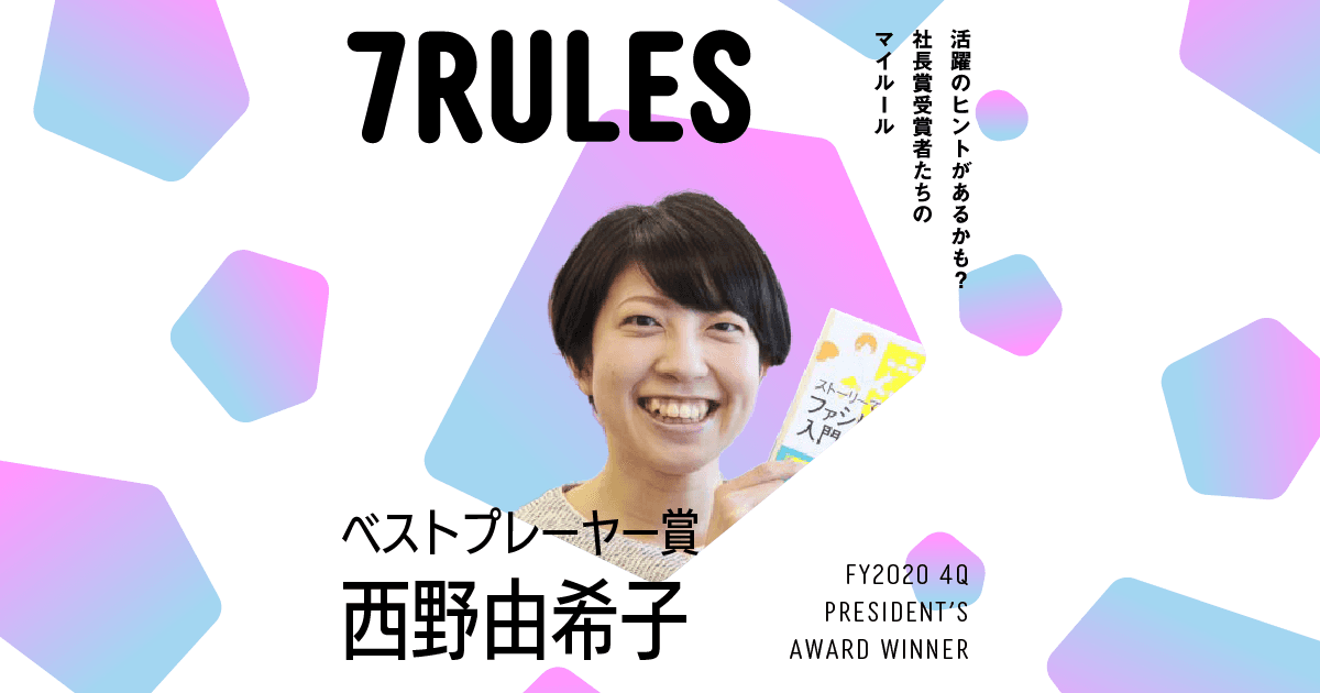 「相手のことを知ろう」という気持ちを常に(2020年4Q社長賞ベストプレーヤー賞・西野さん)#受賞者たちの7RULES #きょうのエン