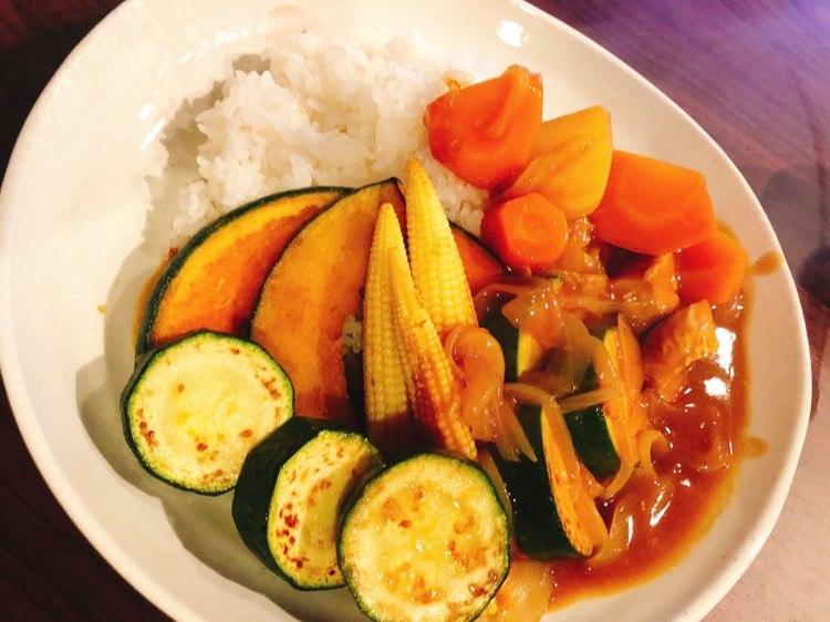 好きな夏野菜を切って焼いて、残りもののカレーをかけただけ。料理とすら呼べない平日の救世主ごはん!笑
