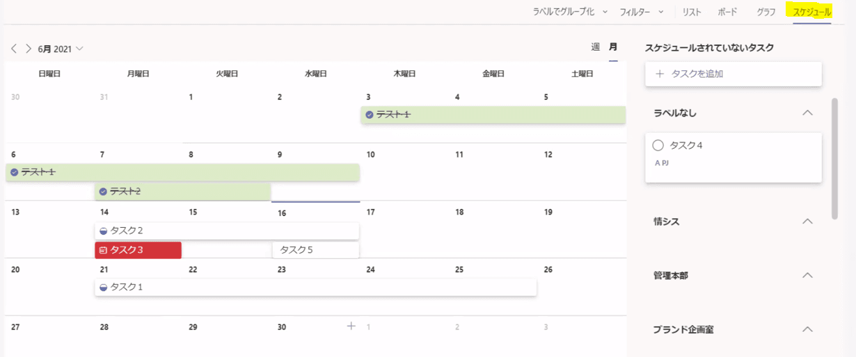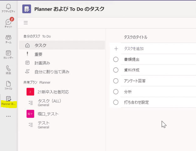 ・teams上のチームと連動して、チーム内でタスクの共有/可視化ができる
