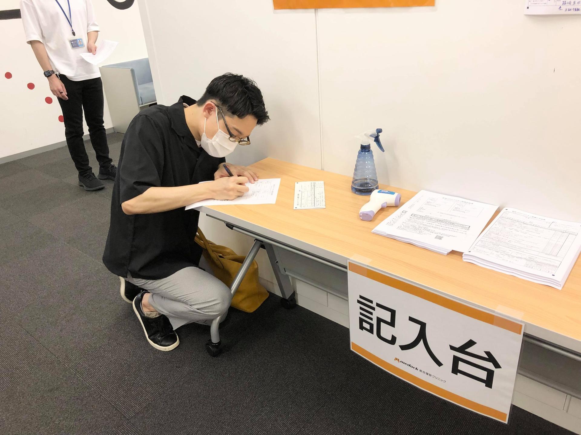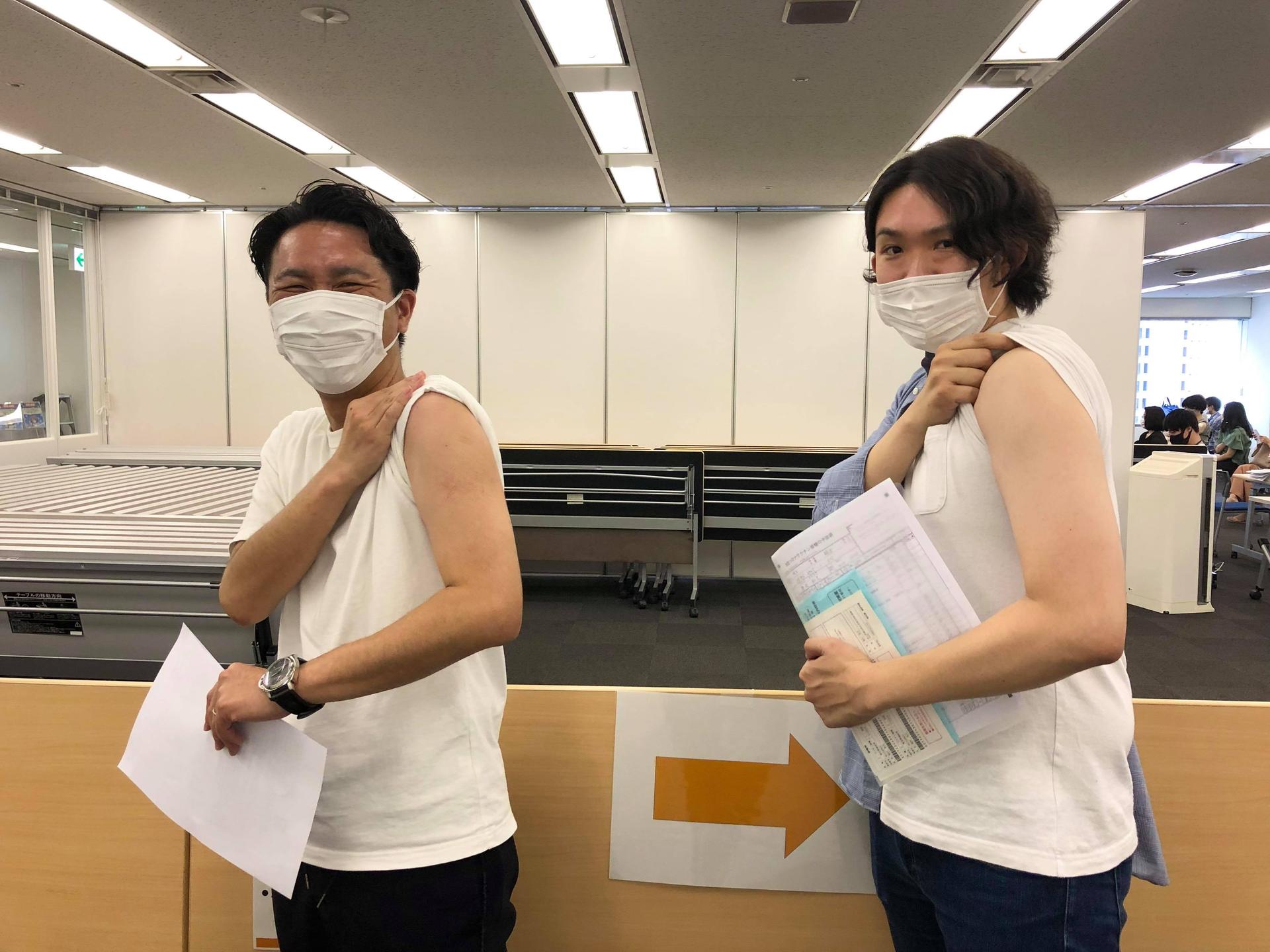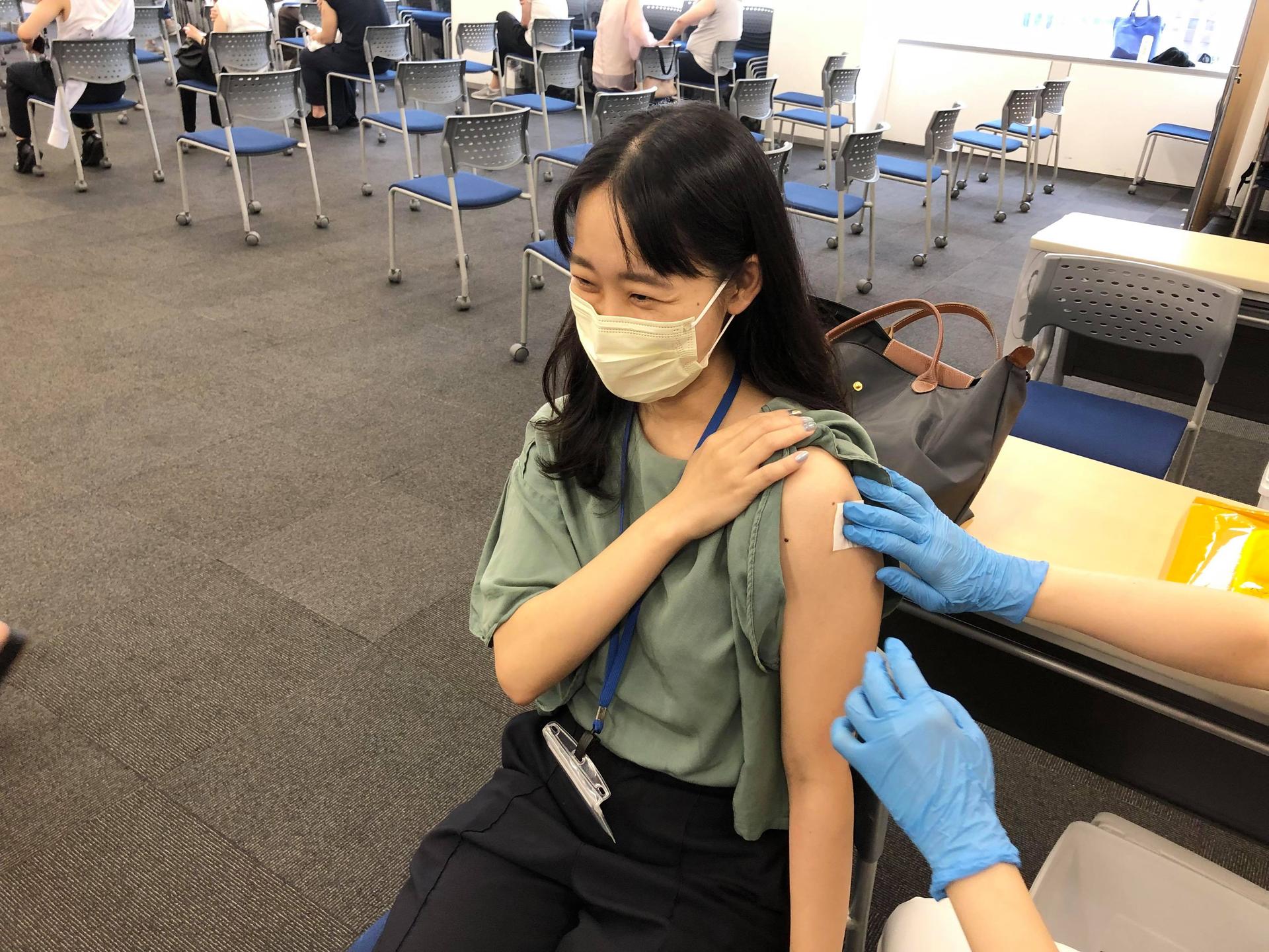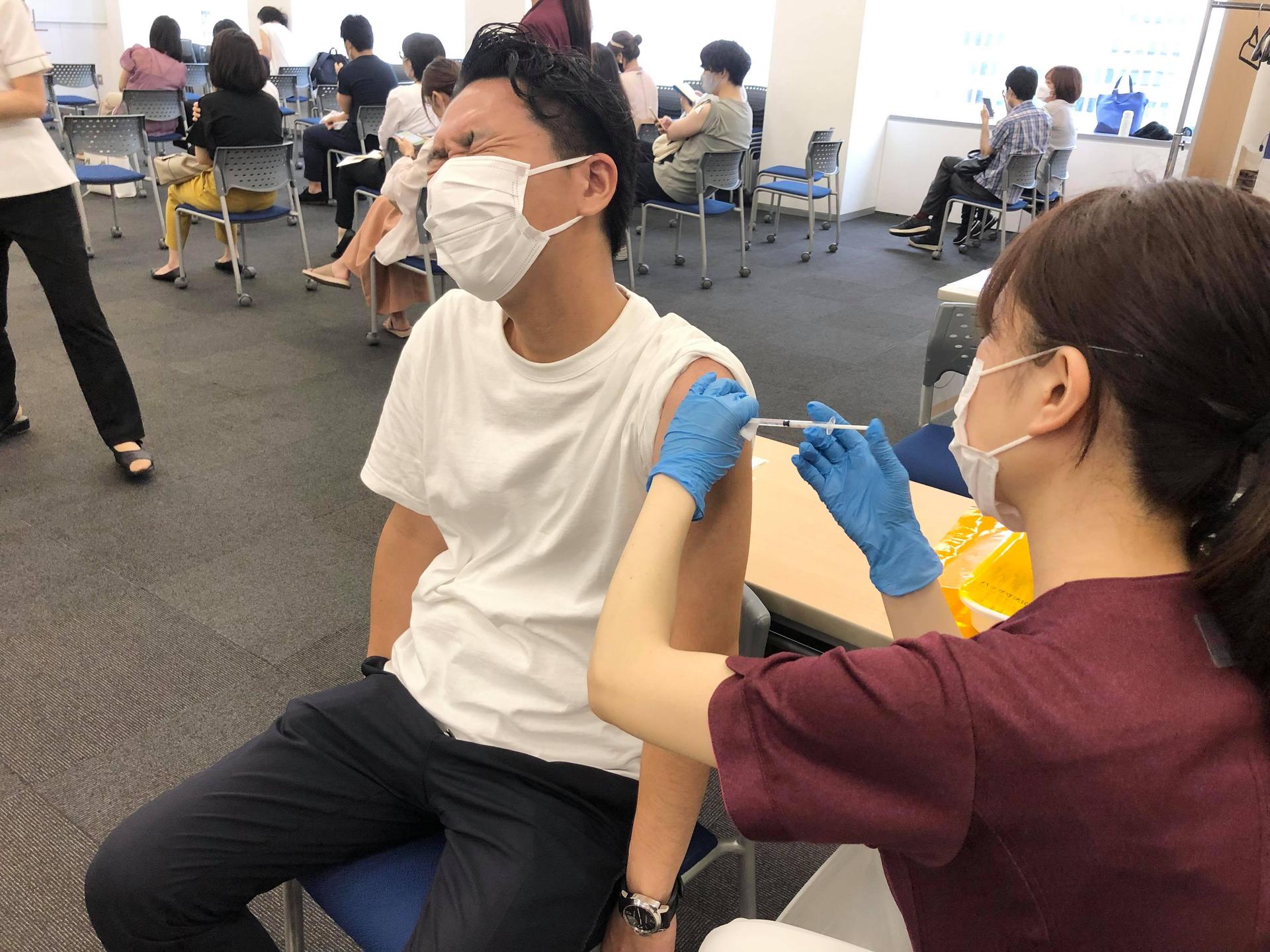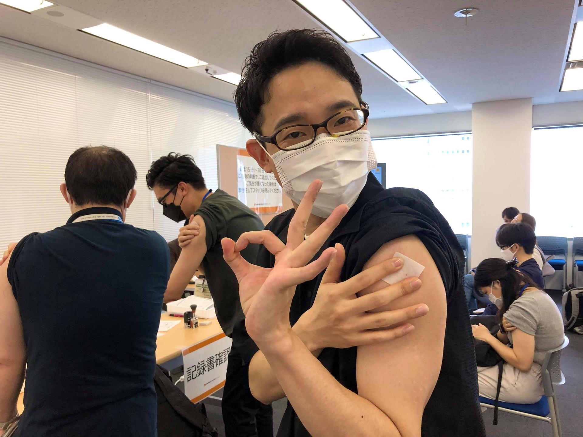 接種は東京オフィスで実施。到着したらまずは…