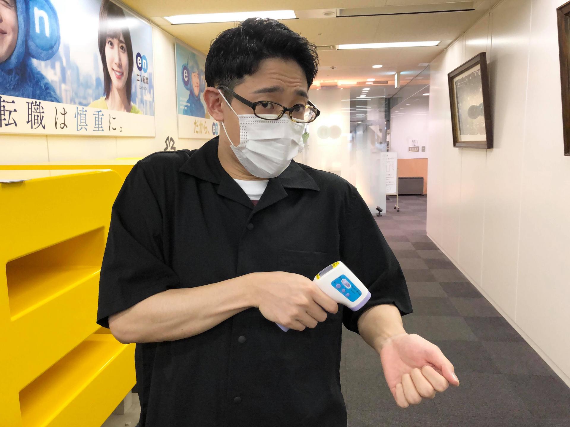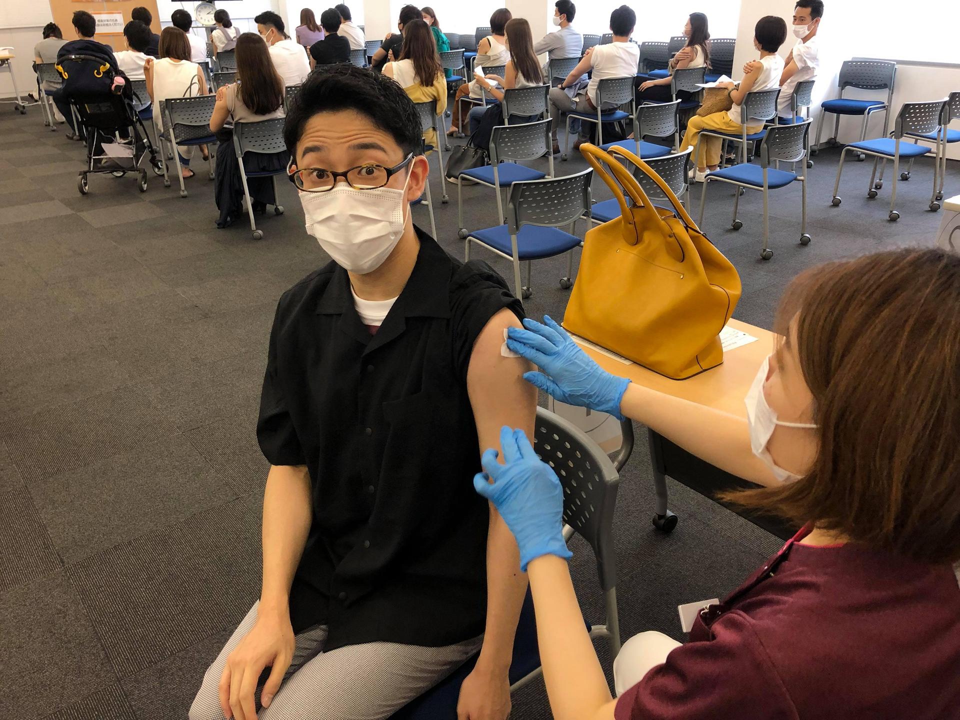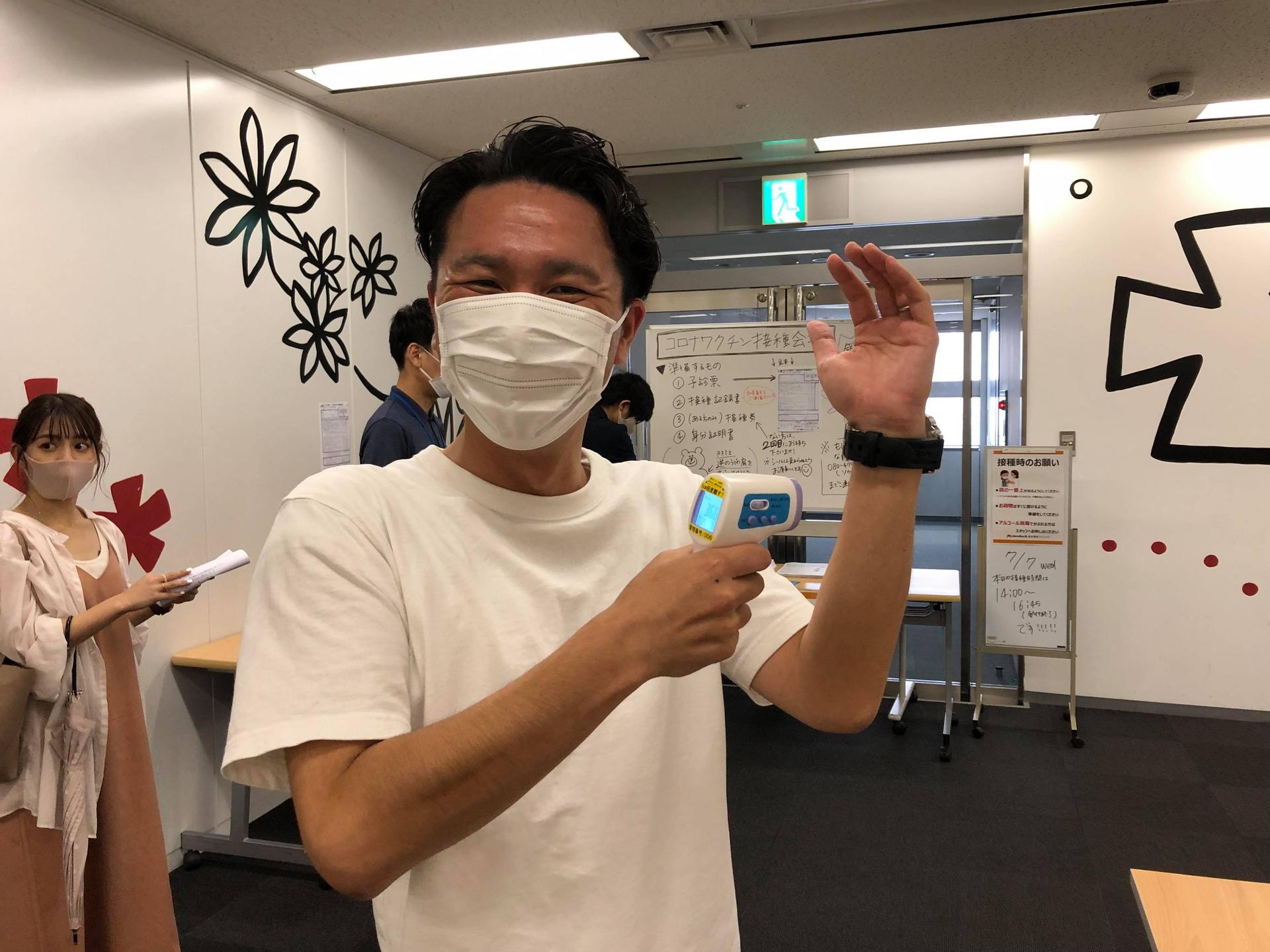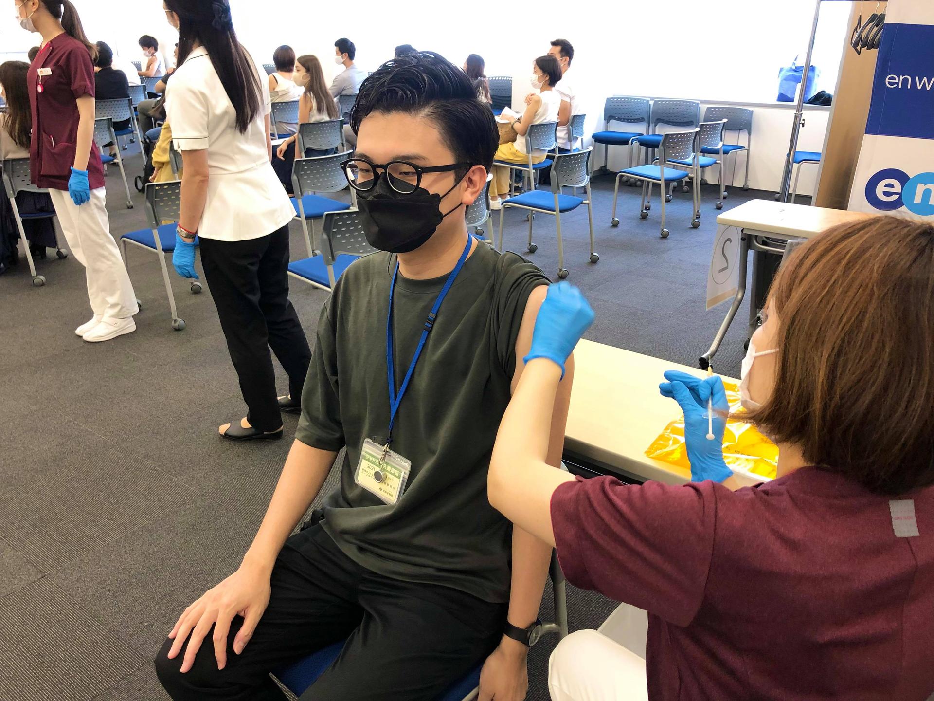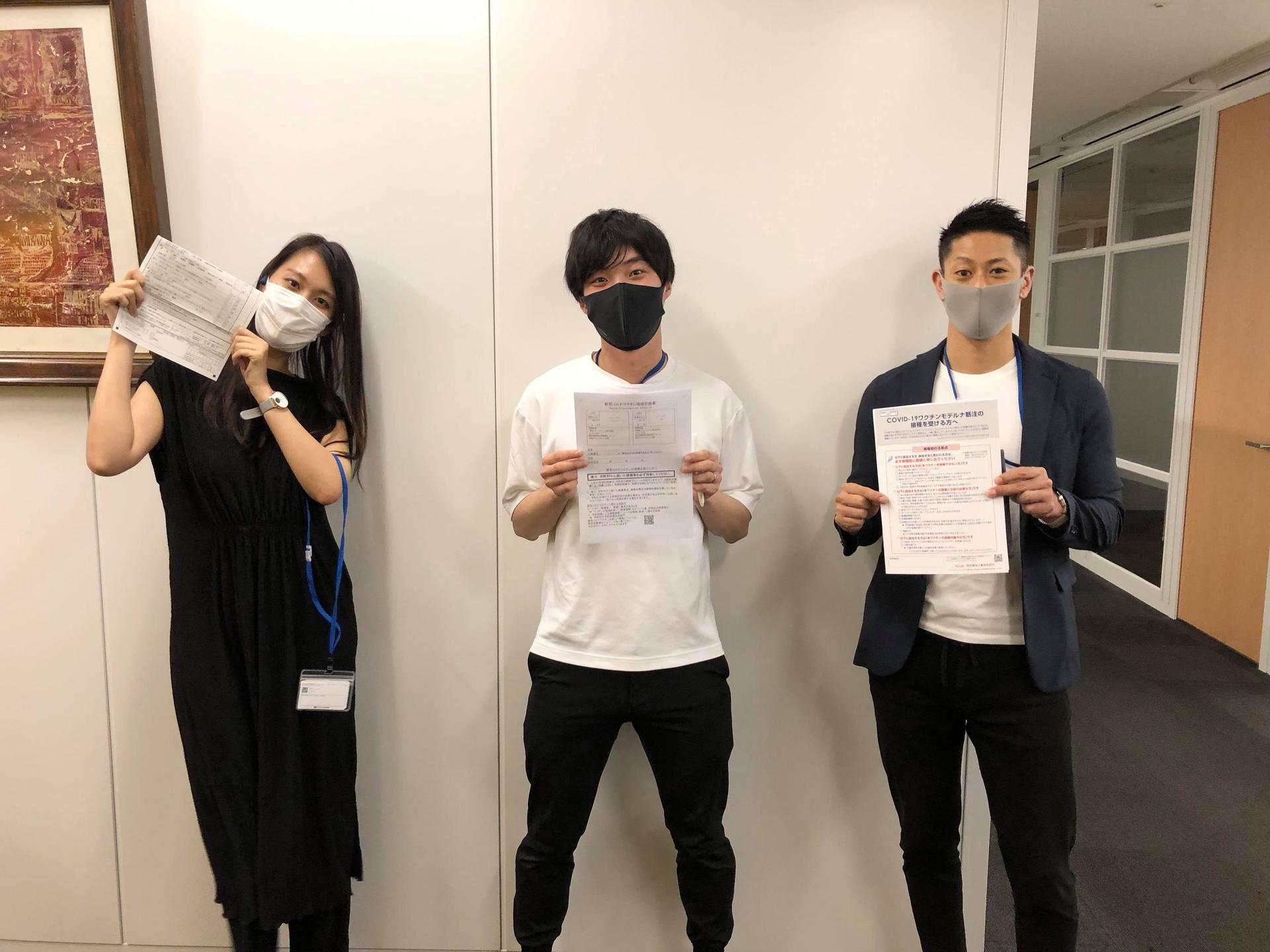 接種は東京オフィスで実施。到着したらまずは…