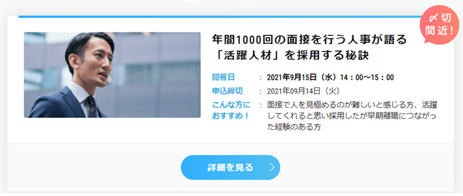 さて、当社で主に中途採用や人事に関するオンラインセミナーを毎月開催しています。