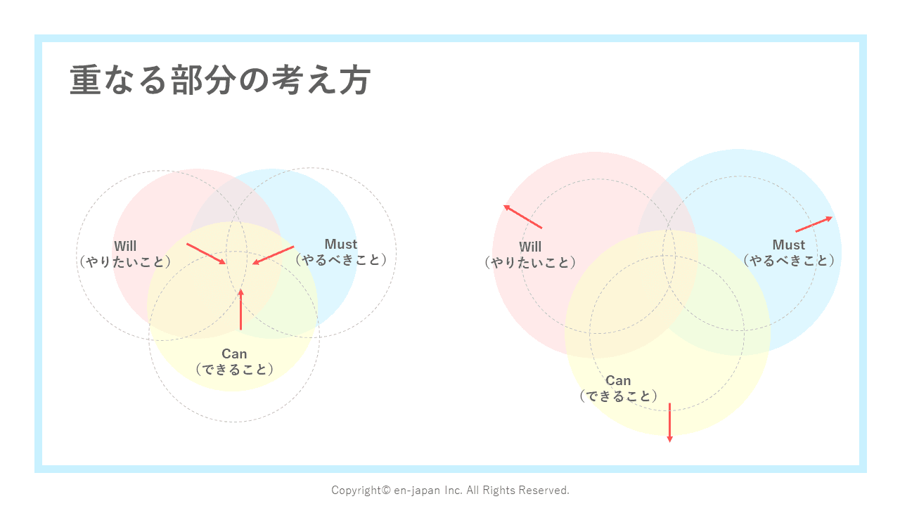 Will-Can-Mustの視点でそれぞれに整理してみましょう。
