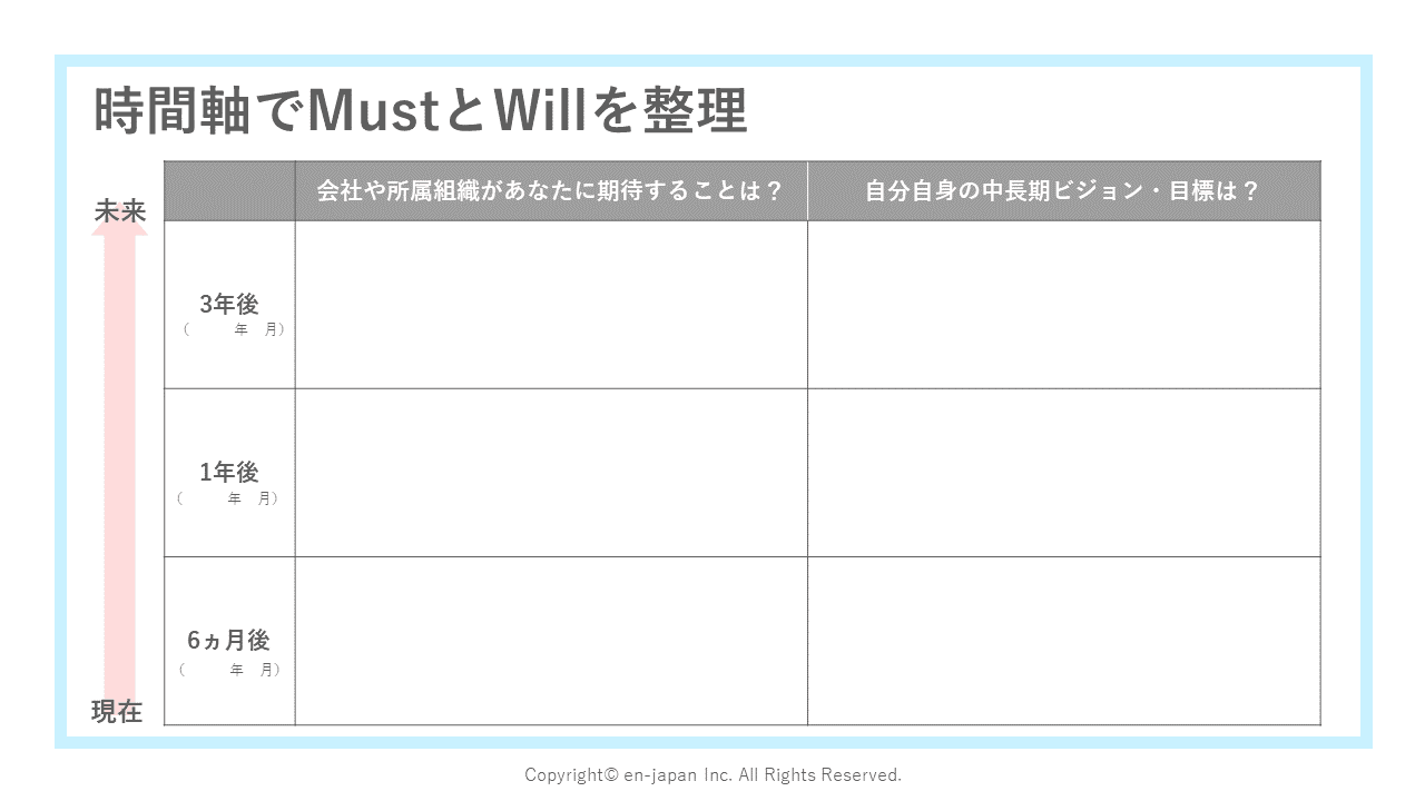 新しい役割(Must)を期待され任されるようになります。その結果としてWillが見えてくる。