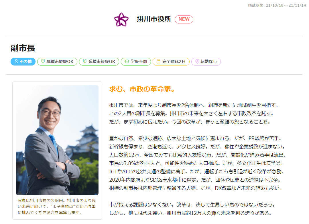掛川市「副市長」の採用支援プロジェクトスタート!新市長と改革に取り組む本募集の詳細を紹介するよ #きょうのエン