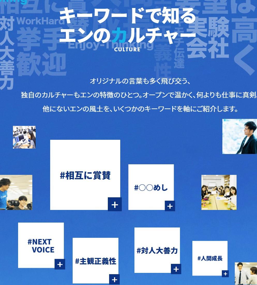 「キーワードで知るエン」も、新たに追加したコンテンツ。社内でよく使われるキーワードから、エンのカルチャーを感じ取っていただけます^^