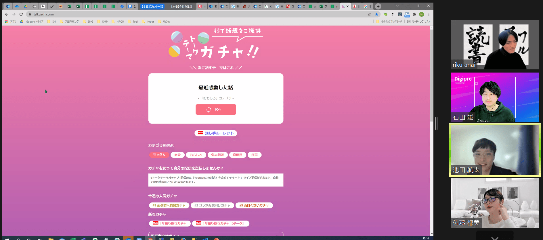 前回のわっしょいランチでは、ルーレットを使ったアイスブレイクがありましたが、今回は「トークテーマガチャ」を導入!