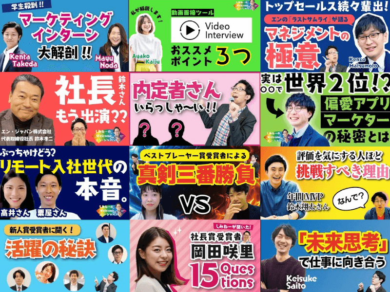 一般的に社内限定で閲覧される社内報を、YouTube上に公開。エンの社風を、社員を通して発信しています。社員が急増する中、会社と社員のつながりをより強固にしていくために始めた取り組みでした。