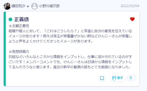 純粋に、一緒に頑張った仲間からメッセージをもらうというのはとても嬉しいですし、他の人から見た自分の強みも知ることができます。