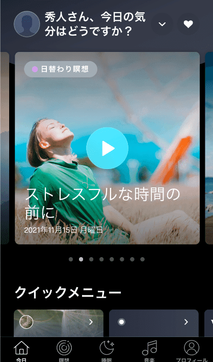 MEDITOPIAという瞑想・マインドフルネスアプリはよく使っています!UIがわかりやすいところが好きなポイントです。