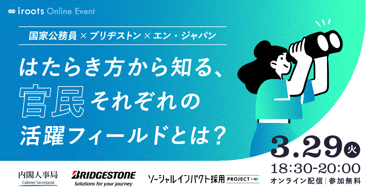 "官民"の働き方についてのイベントを開催!内閣人事局×ブリヂストン×エン・ジャパンが登壇 #iroots
