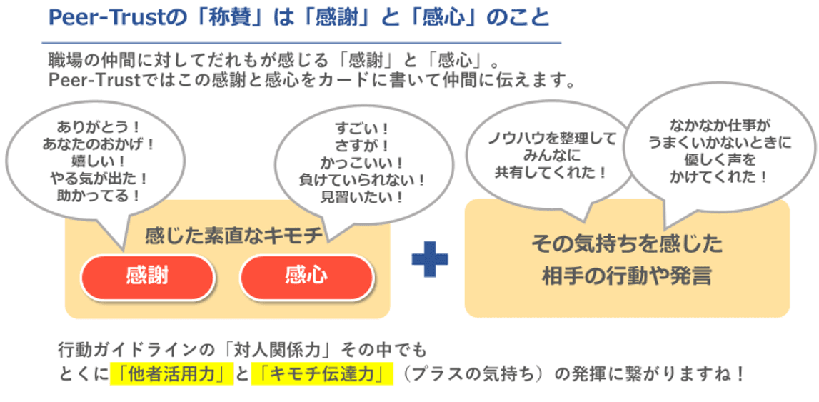 Peer-Trust(通称:ピアトラ)とは…エン社内で導入されている、「職場の仲間に感謝・感心を伝えるポジティブコミュニケーションツール」です!