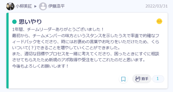 サービス運営グループはこの時期が繁忙期で、殺伐とした雰囲気になることもあります。でも、ピアトラを活用してポジティブなコミュニケーションが取れた結果、いい雰囲気が保てました!